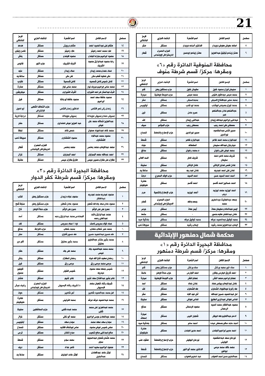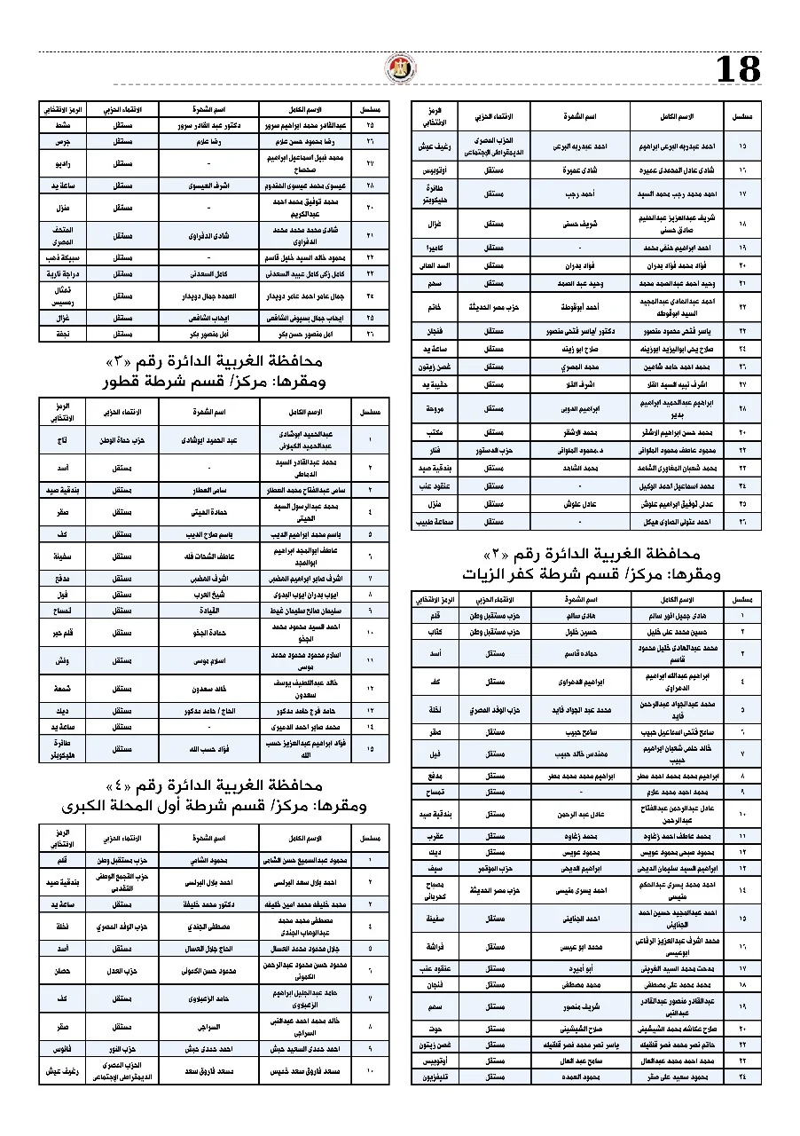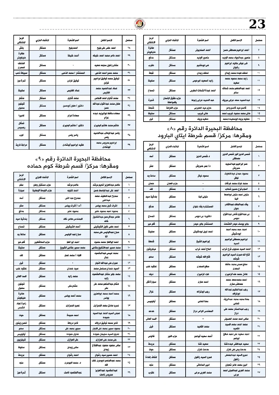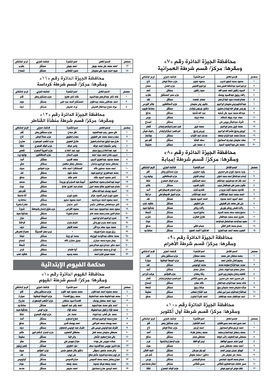 بالأسماء.. القائمة الكاملة لمرشحي مجلس النواب بنظام الفردي