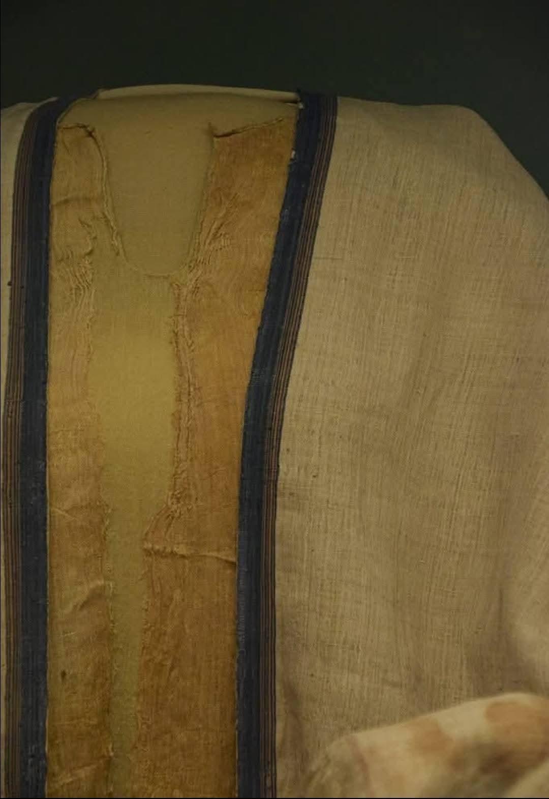 حين تقف أمام تلك القطعة الأثرية، وهي عبارة عن قميص كتان أبيض رقيق بلا ياقة، له فتحة صدر طويلة وأكمام واسعة، تكاد لا تصدق أن الزمن مرّ عليه كل هذه القرون. فالنسيج لا يزال متماسكًا، والتفاصيل محفوظة بشكل يدعو للدهشة، وكأن صاحبها سيعود ليرتديها في أي لحظة.