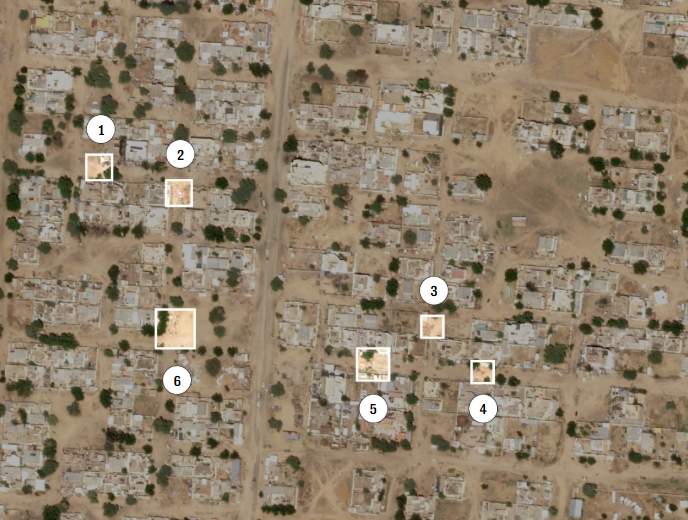 وكشف تحليل أجراه مختبر أبحاث الشؤون الإنسانية في كلية ييل للصحة العامة، والذي يتتبع الحصار باستخدام صور مفتوحة المصدر وصور الأقمار الصناعية، عن مجموعات من الأجسام "تتوافق مع حجم الجثث البشرية" و"تغيرات في لون الأرض مائلة إلى الحمرة" يُعتقد أنها إما دماء أو تربة ملوثة.
