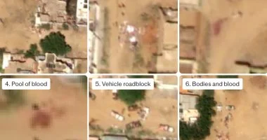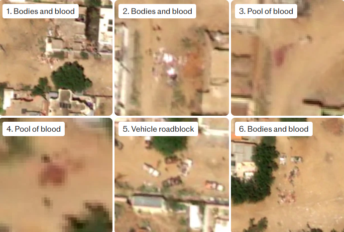 وقالت الصحيفة إن برك الدماء كثيفة، وأكوام الجثث ظاهرة، لدرجة أن التطهير العرقي الذي ارتكبته قوات الدعم السريع يمكن رؤيته من الفضاء.