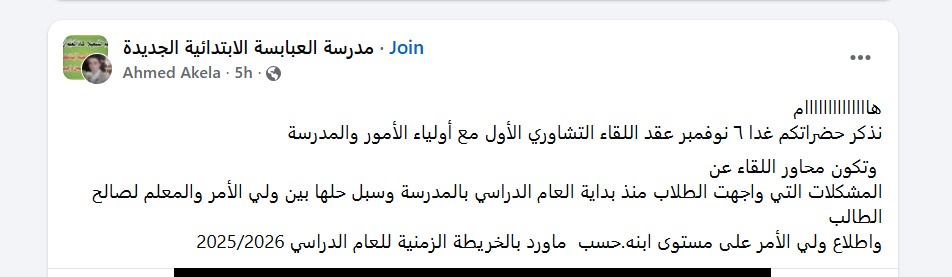 ومن جانبها حرصت الصفحات الرسمية للمدارس على فيس بوك ، على التأكيد على دعوة اولياء الأمور لحضور اللقاء التشاوري الأول اليوم الخميس ، لمناقشة و حل مشاكل الطلاب في الدراسة .