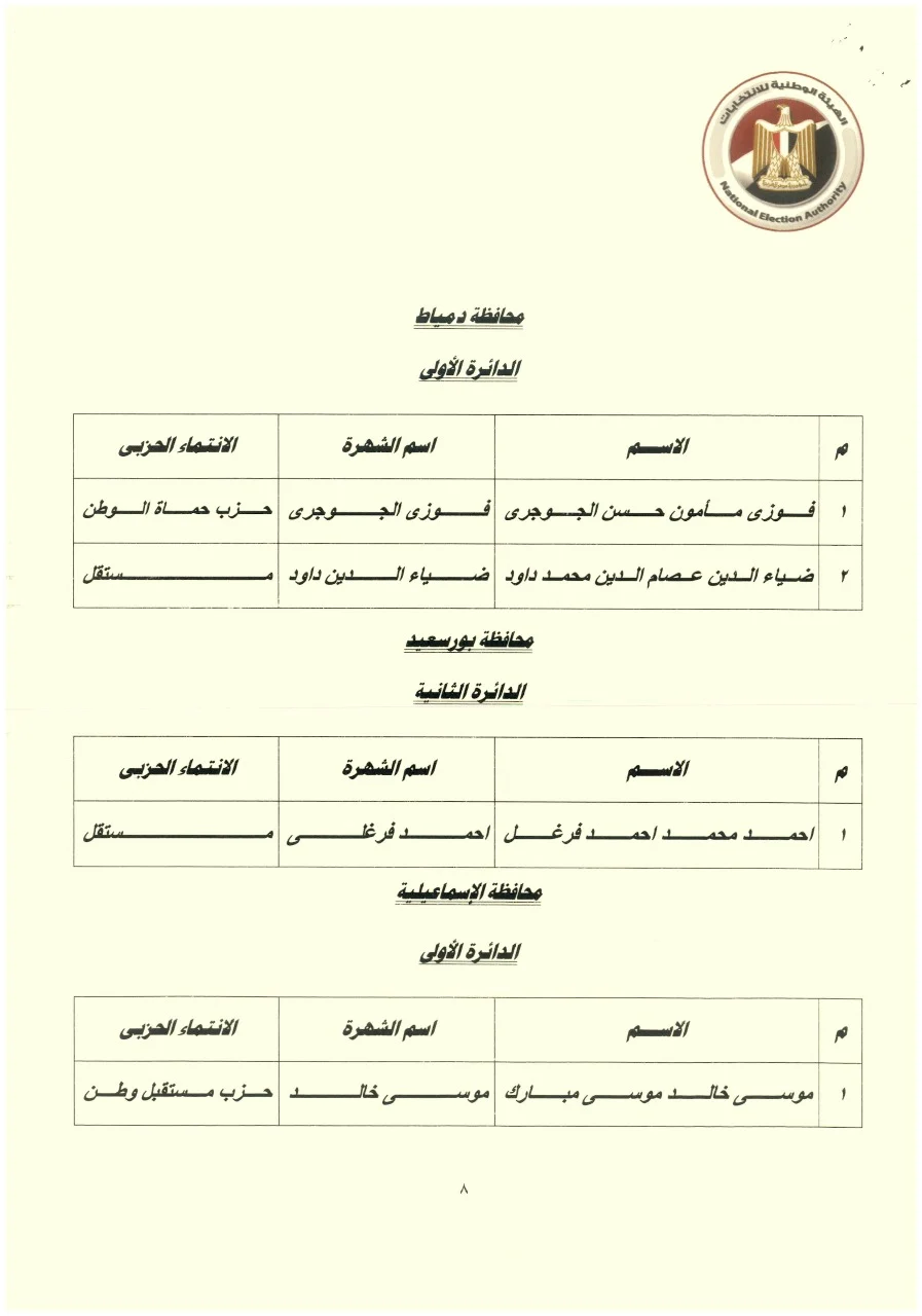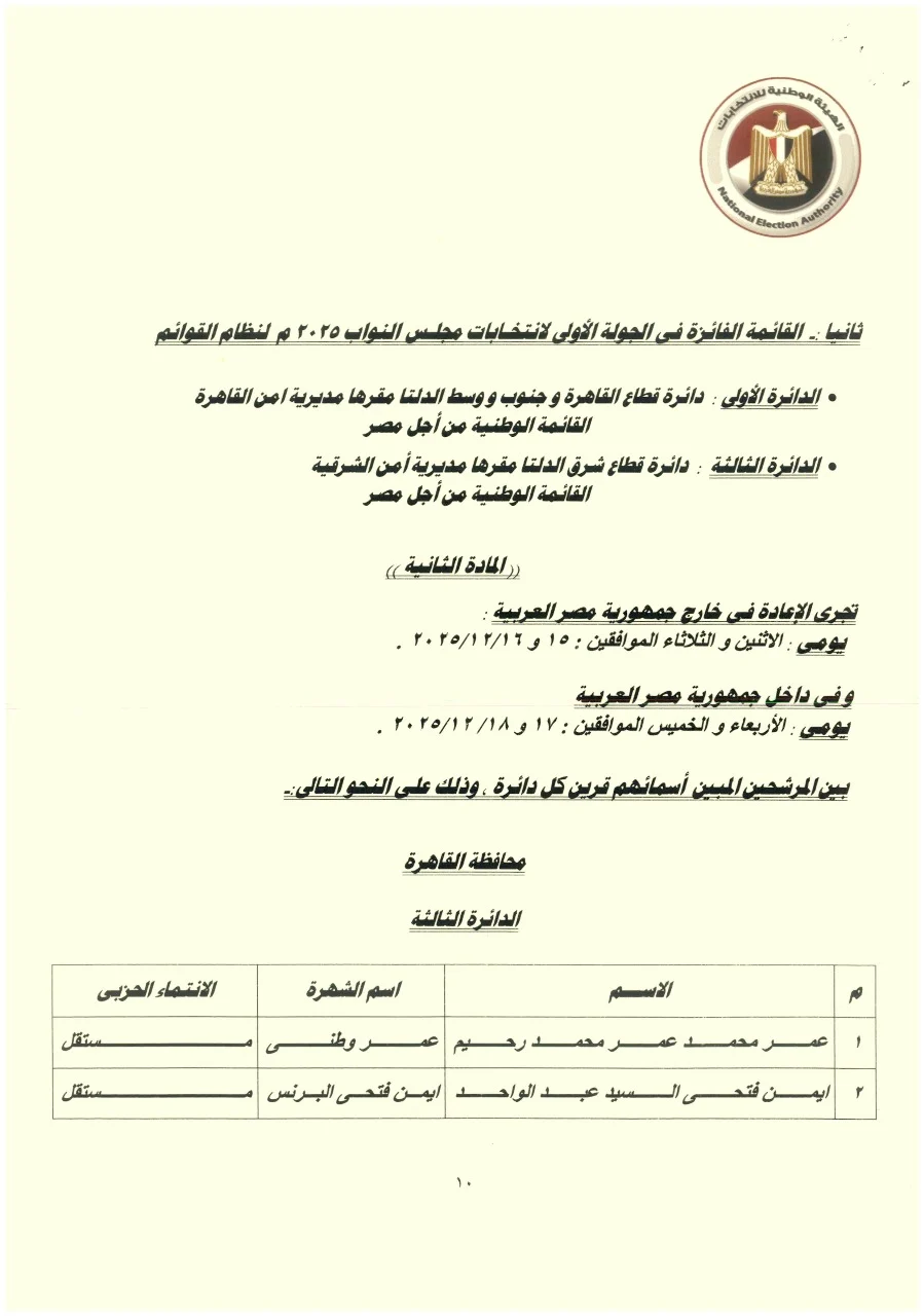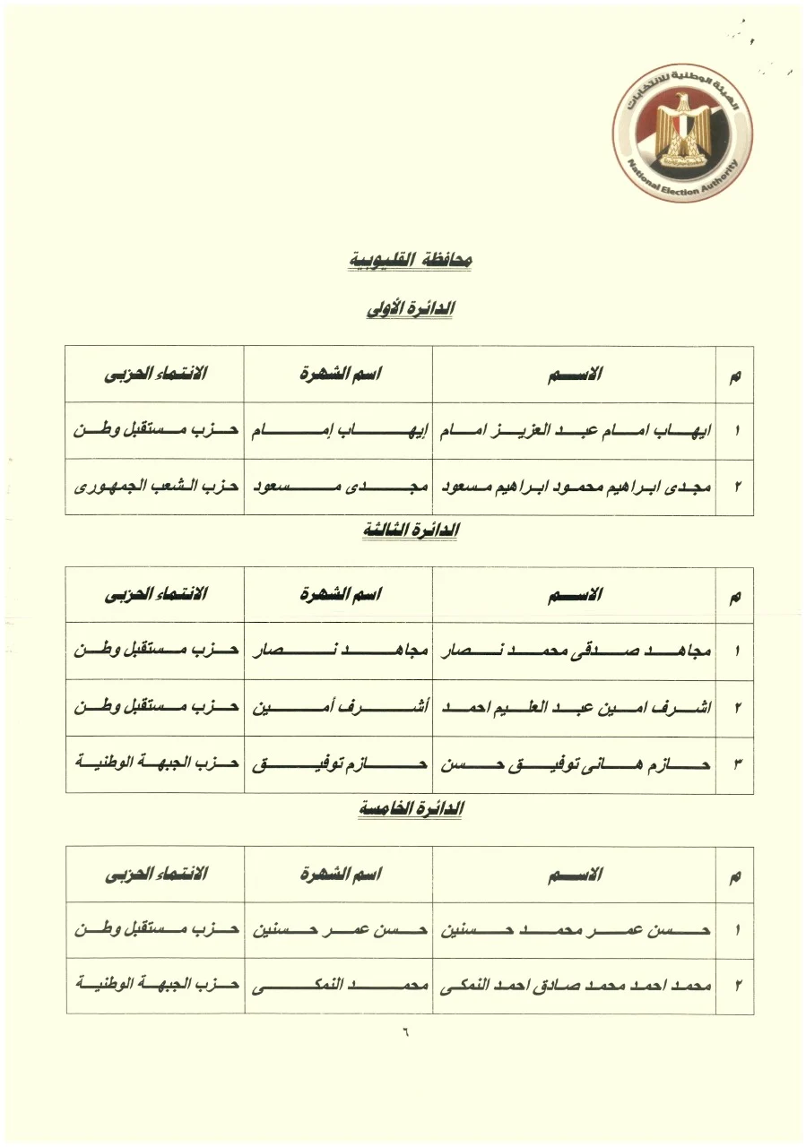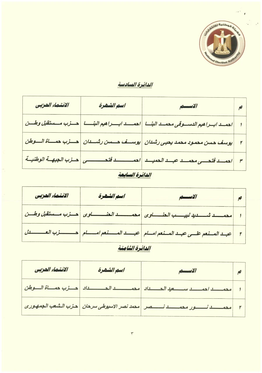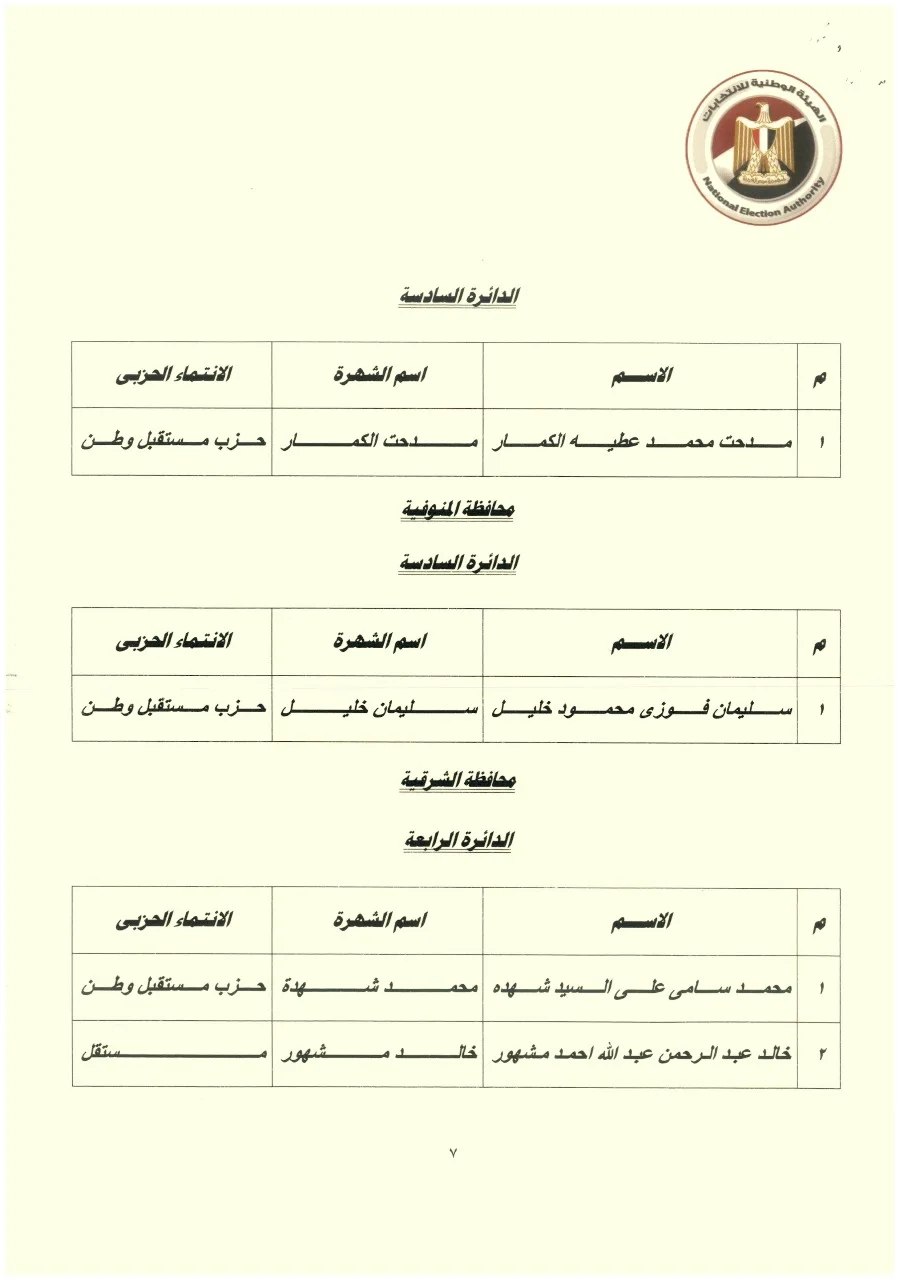 أعلنت الهيئة الوطنية للانتخابات النتيجة الرسمية أسماء المرشحين الفائزين بالنظام الفردى بالمرحلة الثانية لانتخابات مجلس النواب.