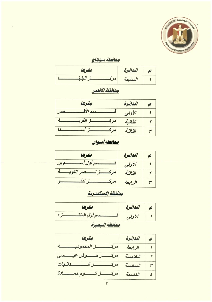 الجدول الزمني للتصويت بالدوائر الملغاة في انتخابات النواب