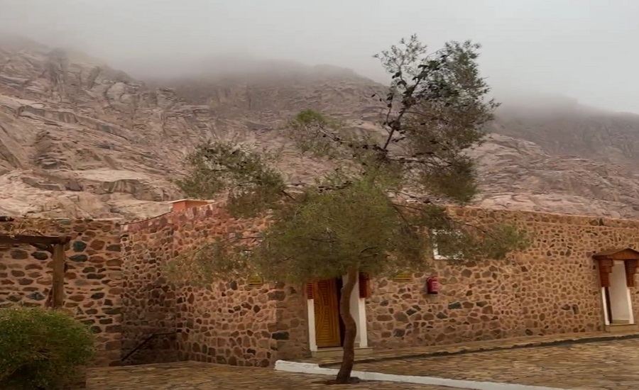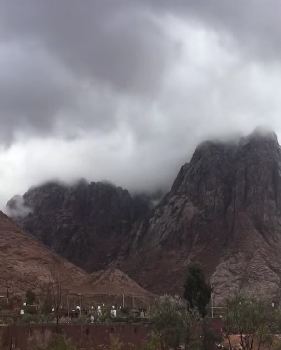 وغلّفت السحب الكثيفة جبال سانت كاترين، إلى جانب انخفاض ملحوظ في درجات الحرارة، خاصة على قمة جبل سانت كاترين، التي تنخفض فيها الحرارة أحيانًا إلى ما دون الصفر.